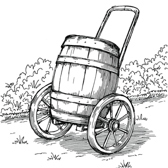 Usage: Joe pushed the wheelbarrow full of gravel to the driveway. Meaning: A small cart with one wheel and two handles used for carrying loads.